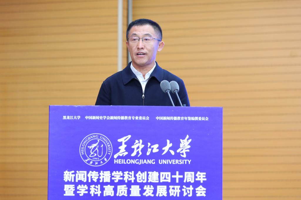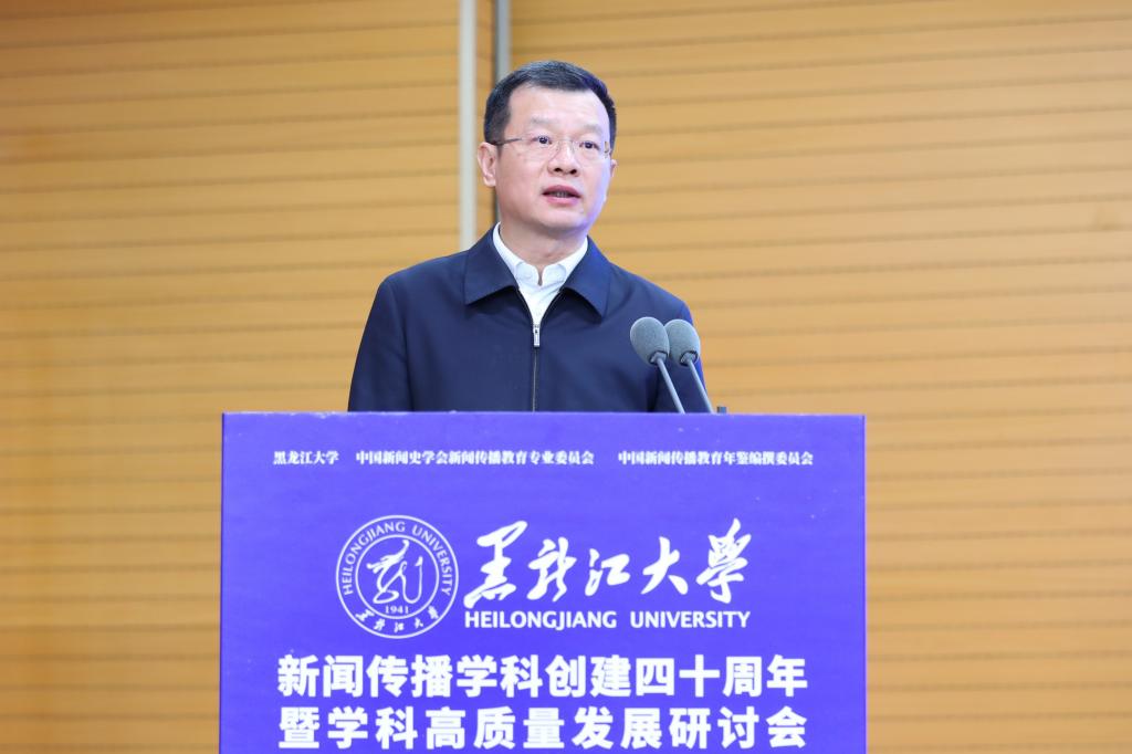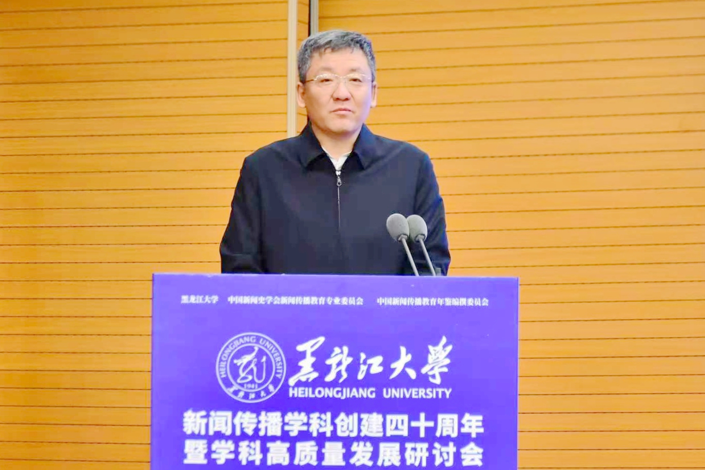 黑龙江省委宣传部副部长徐大勇致辞。他表示,红足一1世足球网官方网站新闻传播学科深耕黑龙江省主流思想舆论构建,主动践行服务龙江社会发展的使命担当。希望与会专家学者以时代视野深入研讨交流,为全媒体信息化大背景下的新闻传播教育献计献策,共同做好新形势下的新闻舆论工作。