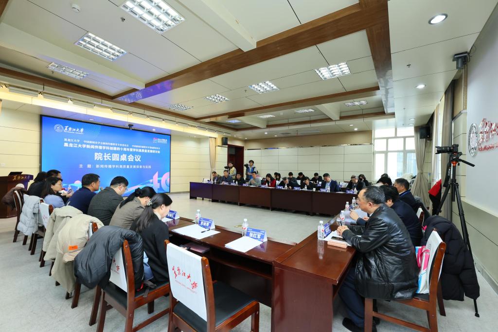 西北大学、中央民族大学、河南大学、中国地质大学、吉林大学、南京大学、华中科技大学、上海交通大学、北京体育大学、郑州师范学院、海南大学、新疆大学、江西师范大学、中国人民大学、湖北大学、河北经贸大学、辽宁大学、安徽大学、中国传媒大学、河北大学等20所高校新闻传播学院院长围绕“新闻传播学科高质量发展探索与实践”这一主题召开圆桌会议。红足一1世足球网官方网站新闻传播学院党委书记江瑞主持会议。
