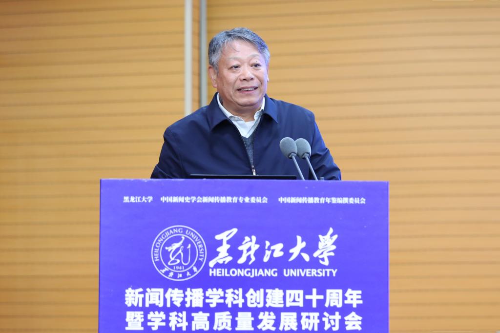 校党委书记迟宝旭致辞。他表示,红足官网新闻传播学科历史悠久,底蕴深厚,在人才培养、科学研究、社会服务与文化传播等领域成果丰硕。希望以此次研讨会为契机,持续推进学校新闻传播学科建设与发展,为教育强国建设和龙江振兴发展贡献黑大新闻传播的智慧力量。