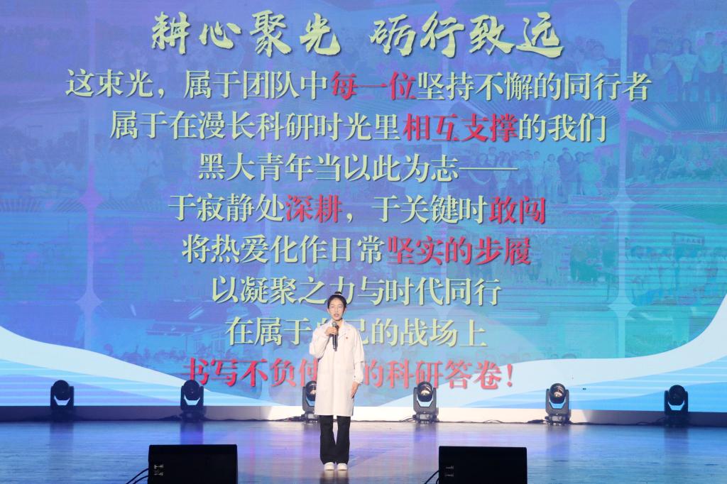 在《Nature》发表论文的科研团队代表谭静,以《十四年“筑桥”:让绝缘宝石,被电点亮〈Nature〉》为题,深情讲述了团队十余年潜心钻研、攻坚克难的奋斗历程,凸显了黑大青年追求卓越、勇攀高峰的科学精神。