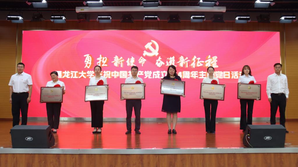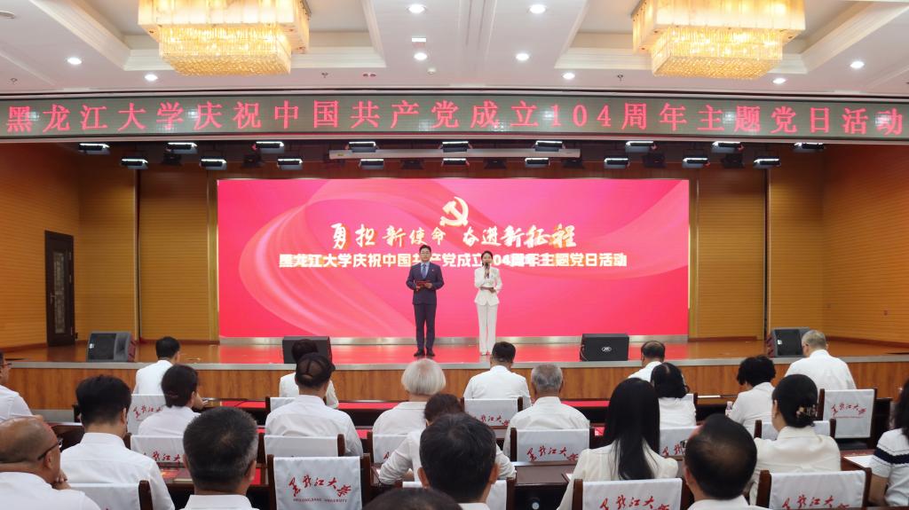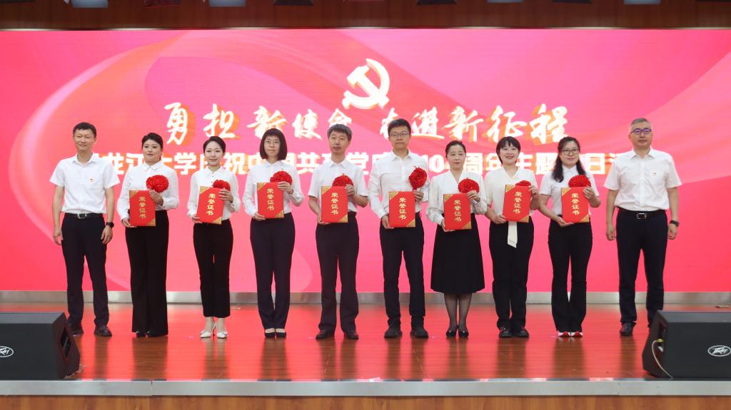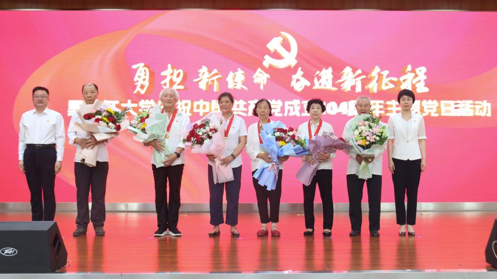 李君明在大会上讲话。他代表学校党委向受到各级各类表彰的优秀个人和先进集体表示祝贺,向荣获“光荣在党50年”纪念章的老党员致以崇高的敬意,向全校各级党组织、全体党员致以节日的问候。他向全校基层党组织和广大党员提出三点希望:一要保持“一颗红心永向党”的政治品格,在坚定信仰上走在前列,为学校守正创新、改革发展稳定提供坚强组织保证。二要永葆"一往无前勇担当"的奋斗姿态,在推动发展上走在前列,支持保障学校第十二次党代会各项筹备任务落实落靠,不断提振干事创业精气神。三要永葆"一身正气作表率"的优良作风,在自我革命上走在前列,让风清气正的政治生态成为学校事业健康发展最坚实的保障。