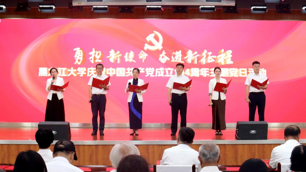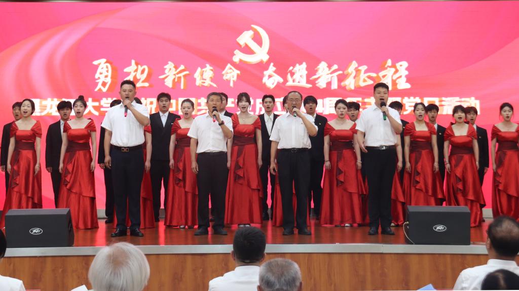 活动期间,新闻传播学院于思祺、龚嘉欣带来了学校“党课开讲啦”精品微党课大赛一等奖作品《从一片雪到一座城》;马克思主义学院李美微带来了第二届全省高校“身在最北方·心向党中央”党课大赛决赛一等奖作品《白山黑水间的“她”力量》;六名党员代表带来诗朗诵《赓续荣光 再创辉煌》;四名党员和艺术学院合唱团带来师生合唱《祖国不会忘记》。