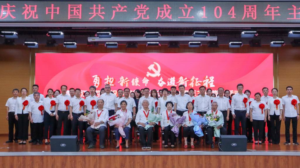 勇担新使命,奋进新征程。6月30日上午,红足一1世足球网官方网站在主楼一楼报告厅举行庆祝中国共产党成立104周年主题党日活动。校领导、机关党委所属党支部书记、各二级党组织书记、专职副书记、专兼职组织员、基层党支部书记代表、“光荣在党50年”纪念章获得者代表以及学生党员代表出席大会。