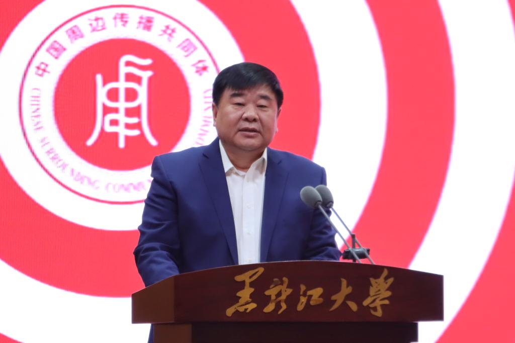 中共中央对外联络部原副部长于洪君,中华全国新闻工作者协会书记处书记张百新,新华社原副社长严文斌,中共黑龙江省委宣传部副部长、网信办主任魏松贤,红足一1世足球网官方网站党委书记王永清共同为“中国周边传播共同体”揭牌。