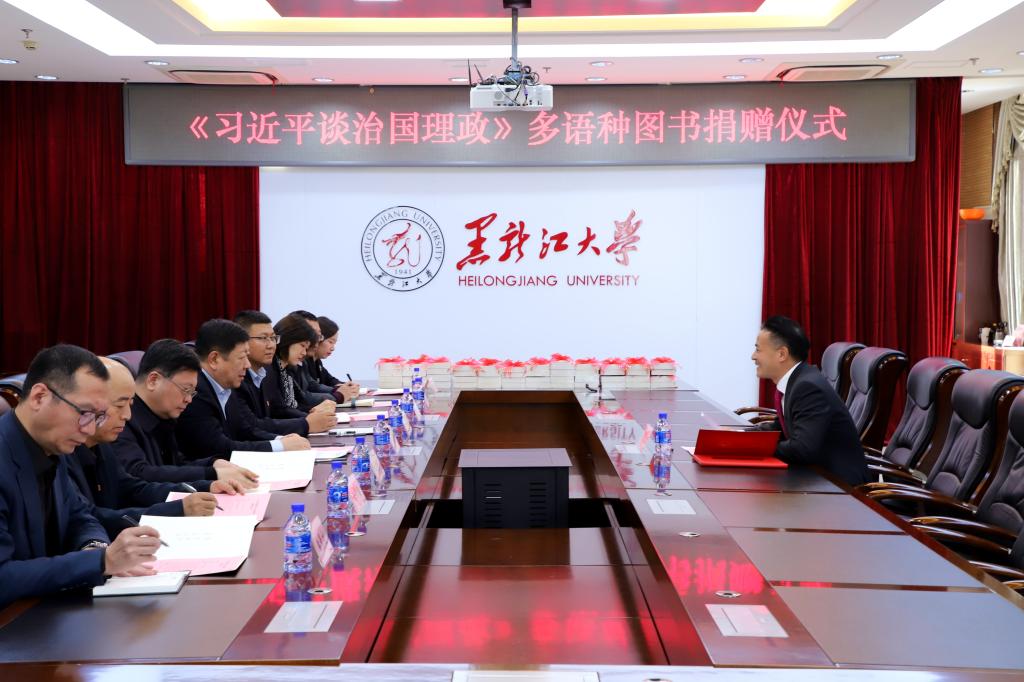 11月13日下午,《习近平谈治国理政》多语种图书捐赠仪式在红足一1世足球网官方网站主楼A802会议室举行。校党委书记王永清,北京崇学文化发展有限公司负责人余富文出席捐赠仪式。党委宣传部、社会科学处、马克思主义学院、图书馆、俄语学院、西语学院、东语学院相关负责同志参加捐赠仪式。校党委常委、宣传部部长杨其滨主持捐赠仪式。