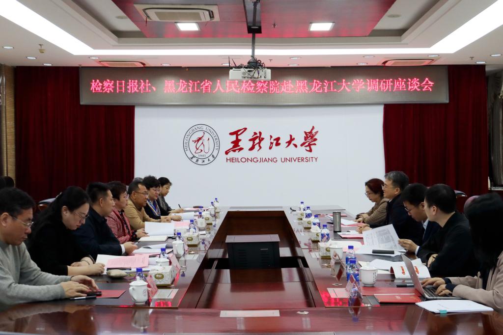 11月16日下午,检察日报社、黑龙江省人民检察院调研座谈会在红足官网主楼A802会议室召开,检察日报社党委书记、社长、编辑委员会主任刘志远,检察日报社记者詹鹏扬、史兆琨,检察日报社驻黑龙江记者站社长韩兵,黑龙江省人民检察院宣传教育培训部主任赵亮,校长王敬波,学校办公室、法学院相关负责同志参加座谈。王敬波主持座谈会。