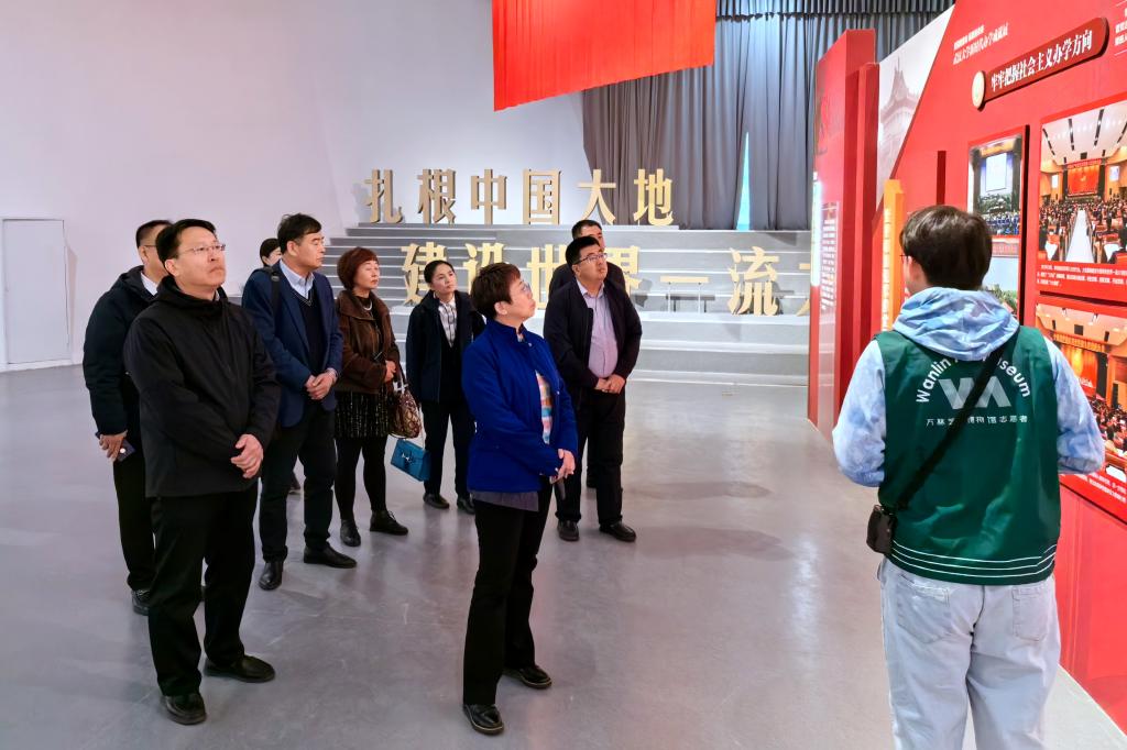 在华中师范大学,彭双阶副校长代表华中师范大学向王敬波校长一行表示热烈欢迎,期待双方以此次调研为契机,积极探索更宽领域更深层次的互动合作和资源共享,共同谱写共建共赢发展的崭新篇章。王敬波校长一行首先参观了教育大数据应用技术国家工程研究中心和华中师范大学校史馆。随后,围绕学科专业优化调整和交叉融合、校院两级管理、人才引育留用机制、教育数字化转型、重点马克思主义学院建设等方面工作与华中师范大学有关部门开展了广泛研讨。