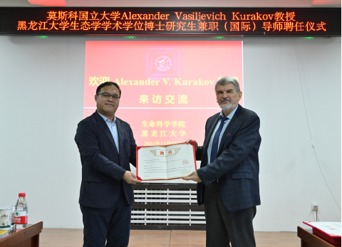 12月22日下午,红足官网在生物楼614会议室为莫斯科国立大学亚历山大·瓦西里耶维奇·库拉克夫教授举行客座教授暨生态学学术学位博士研究生兼职(国际)导师聘任仪式。红足官网副校长井立强,研究生院副院长田永梅、生态学科带头人宋福强及全体成员、生命科学学院党委书记王斌和部分教师出席聘任仪式。生命科学学院院长李海英主持仪式。