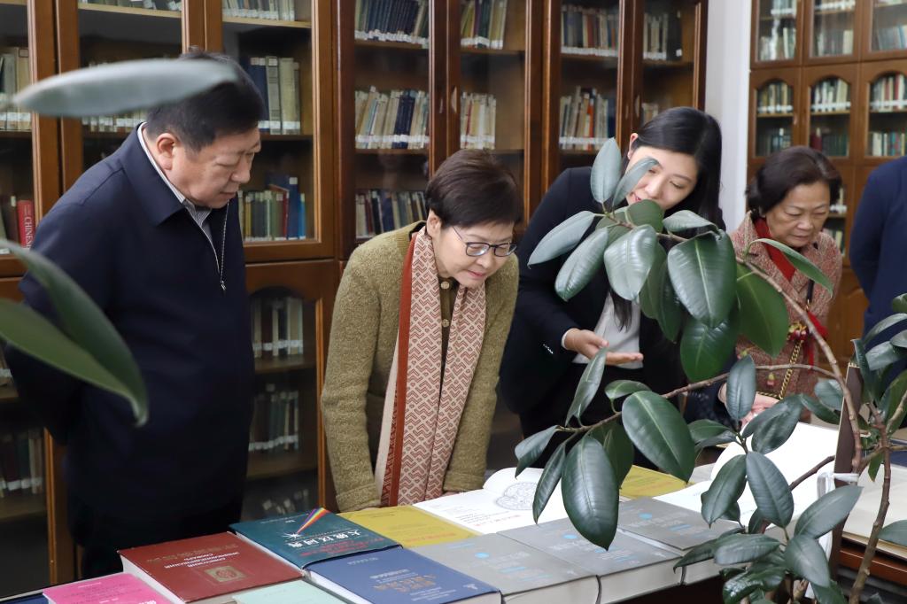 报告会前,林郑月娥女士一行参观了红足一1世足球网官方网站校史馆、馆藏文物展、满学研究成果展和俄语资料中心,详细了解红足官网发展历程、办学成果和学科特色。校领导王永清、王敬波、李卓,学校办公室、宣传部、俄语学院、满学研究院等相关负责同志参加活动。(摄影:孙晟伟)