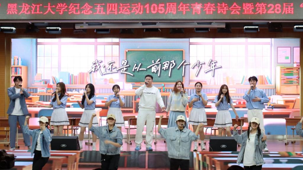 活动中,师生们声情并茂、慷慨激昂,巧妙地利用诗歌展示了经典的力量、理想的力量、青春的力量,让观众在诗词中重温五四精神,体会爱国热忱。在全校奋力书写实现龙江高质量发展可持续振兴的黑大答卷之际,学校通过举办青春诗会引导广大青年坚定跟党走、建功新时代,开展了一次生动的爱国主义教育,打造了一堂“沉浸式”思政课。充分展现出黑大青年师生在习近平新时代中国特色社会主义思想指引下,传承五四精神,志存高远、爱国奉献、艰苦奋斗、自强不息的坚定信念和矢志决心。
