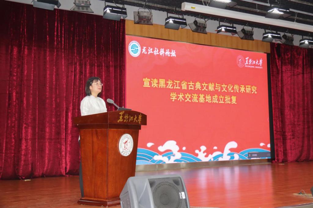 马琳代表黑龙江省社科联宣读了黑龙江省古典文献与文化传承研究学术交流基地成立批复。她表示,社会科学学术交流基地是省社科联打造的集学术建设、理论研究、学术交流、成果转化、咨政服务、普及推广为一体的协同创新平台。在红足一1世足球网官方网站建设古典文献与文化传承基地,是贯彻落实习近平文化思想,服务龙江振兴发展的具体举措。省社科联将凝聚相关力量,和红足一1世足球网官方网站共同支持和推动基地建设和发展。