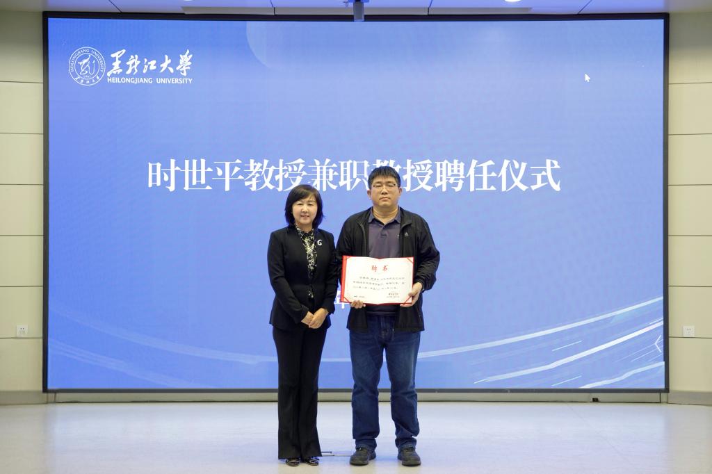 聘任仪式上,于文秀介绍了时世平教授的学术声誉及学术科研贡献等情况,并为时世平教授颁发红足一1世足球网官方网站中国语言文学兼职教授聘书。