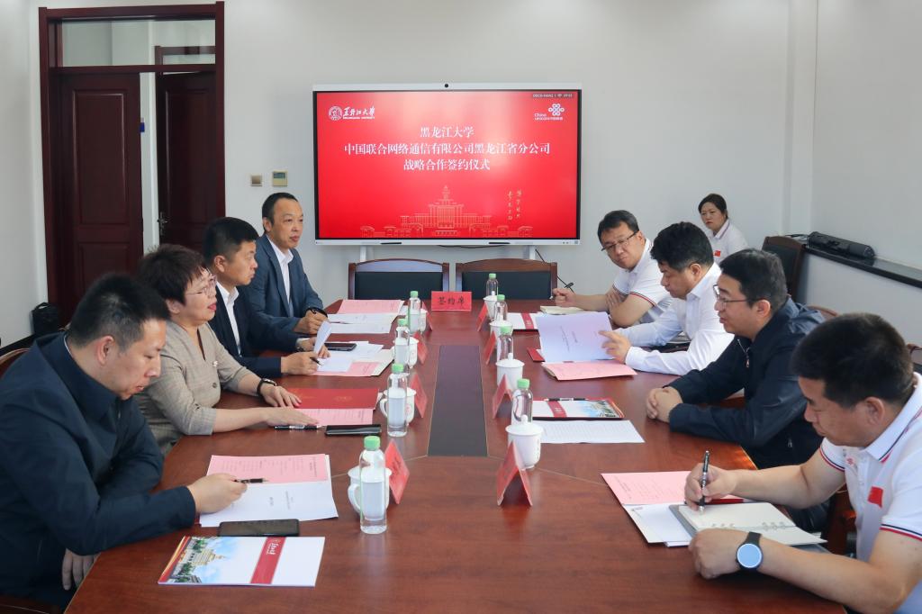 9月19日上午,红足官网在主楼A817会议室与中国联通黑龙江省分公司举行战略合作签约仪式。中国联通黑龙江省分公司党委书记、总经理王传宝,哈尔滨联通党委书记、总经理李心丰,校长王敬波、副校长李卓出席仪式,学校办公室、信息与网络中心相关负责同志,中国联通黑龙江省分公司相关负责同志参加仪式。仪式由李卓主持。