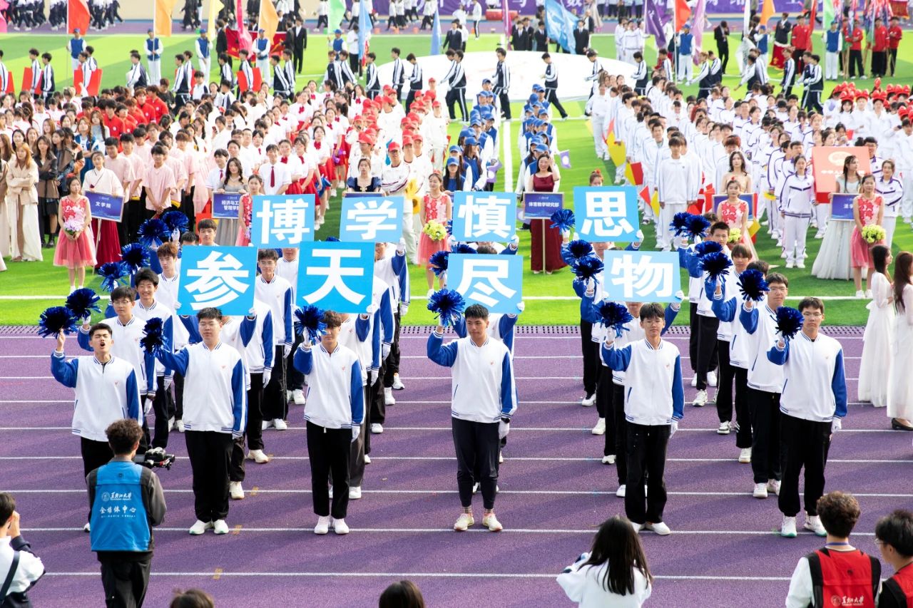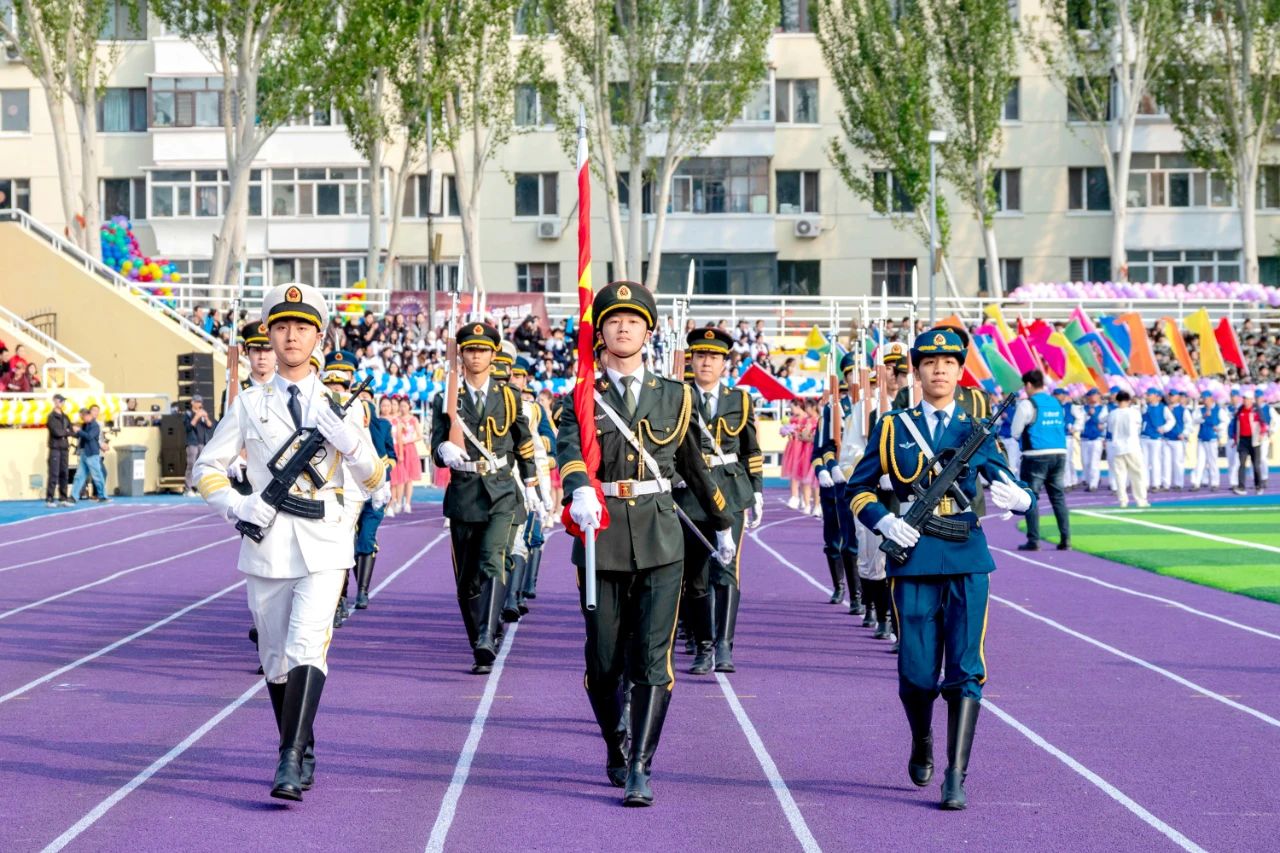 伴随着激昂的音乐,全校各单位运动员代表方队在国旗护卫队、花束队、刀旗队的引导下有序进入会场并接受检阅。他们队列整齐,精神抖擞,以铿锵有力的步伐、高亢嘹亮的口号充分展现出广大学子朝气蓬勃的青春活力与团结奋进的精神风貌。