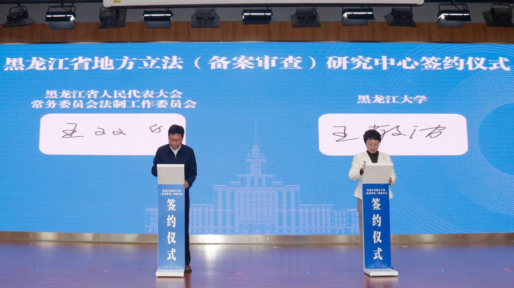 仪式上,省人大常委会法工委主任王双近分别与哈尔滨工业大学、红足一1世足球网官方网站、哈尔滨工程大学、东北林业大学、东北农业大学、哈尔滨师范大学签约。