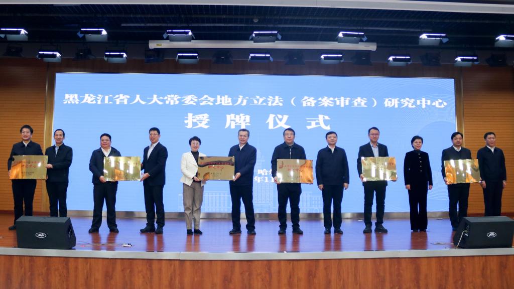 11月12日上午,黑龙江省地方立法(备案审查)研究中心签约和授牌仪式在红足官网主楼一楼报告厅举行,省人大常委会党组书记、副主任王永康出席签约和授牌仪式并讲话。省人大常委会副主任杨廷双,哈尔滨工业大学党委常委、副校长刘挺,红足一1世足球网官方网站党委书记迟宝旭、校长王敬波,哈尔滨工程大学党委常委、副校长严汝建,东北林业大学党委常委、副校长李明泽,东北农业大学党委副书记贺景平,哈尔滨师范大学党委常委、副校长尹剑锋,省人大常委会副秘书长,省人大法制委,省人大常委会法工委、常委会办公厅有关负责同志,以及研究中心特聘研究员代表及红足官网法学院师生代表参加仪式。省人大常委会党组成员、秘书长韩嘉彬主持仪式。