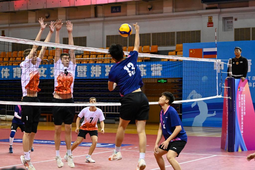 随后,进入交流比赛环节。随着裁判的一声哨响,参赛运动员迅速进入比赛状态。他们身姿矫健、配合默契,每一次精彩的传球、扣球与拦网都赢得了阵阵掌声,充分展现出中俄两国青年运动员的竞赛水平和勇于拼搏的精神风貌。本次活动,双方通过分组比赛、交流互动,提高双方运动员技术、战术水平,增进中俄两国青年之间的友谊。
