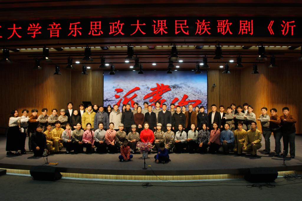 据悉,本次歌剧表演不仅是《歌剧片段与重唱》课程的实践教学成果,也是一堂全部由学生排演的音乐思政大课。该剧由艺术学院硕士生导师周美丽担任指导老师,深刻诠释了沂蒙山精神中“水乳交融、生死与共”的核心内涵,激励着人们在新时代传承和弘扬沂蒙山精神,为实现中华民族伟大复兴而努力拼搏。(摄影:王宇晗 朱妍 张雨彤 孙语潞)