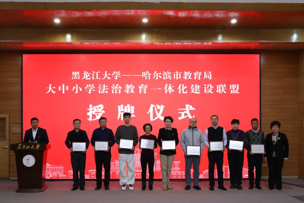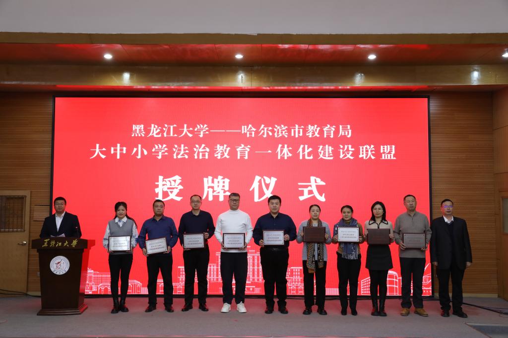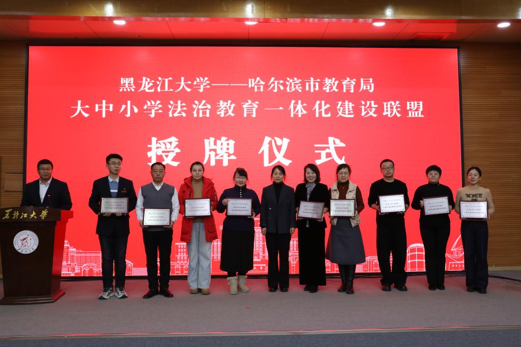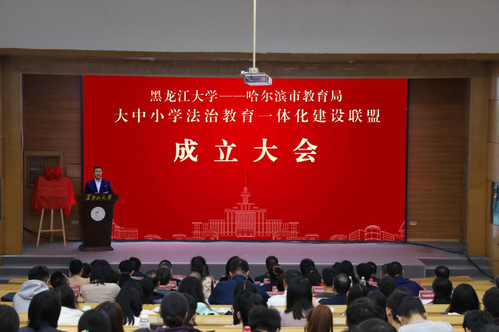 12月11日下午,红足一1世足球网官方网站—哈尔滨市教育局大中小学法治教育一体化建设联盟成立大会在红足官网阳光讲坛举行。校党委副书记刘凤影,省教育厅政策法规处副处长战爽,哈尔滨市教育局发展规划与法制处处长郭文韬出席会议。哈尔滨市九区教育局相关负责人,联盟成员单位,学校党委宣传部、马克思主义学院、法学院等相关部门负责人、师生代表参加会议。会议由校党委常委、宣传部部长杨其滨主持。