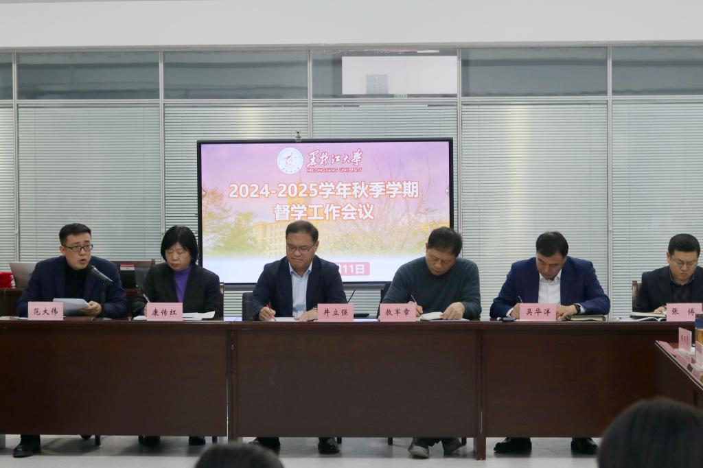 井立强作总结讲话。他代表学校对新当选的副总督学和7位督学表示热烈祝贺和诚挚欢迎,对原有督学队伍工作表示敬意与感谢。井立强结合新时代教育评价改革时代背景、督学督导队伍建设工作新高度等两个方面强调了督学工作会议召开的重要意义。明确了督学工作的总原则、问题导向及目标导向。对下一阶段督学工作推进提出了意见和建议。一是讲使命、有担当,重在谋划。明确督学工作的重要价值和意义,围绕高等教育新形势新举措新任务和学校“四大办学战略”,站在高位对教育质量管理体系做出总体规划和战略谋划,将学校内部教育教学质量管理体系建设充分融入到学校高质量发展总体进程中。二是讲引领、有督导,重在评价。充分发挥督学队伍在培优性和诊断性听课、质量保障制度体系设计与实施等方面发挥重要引领和督导作用,成为联系学校、学院、督导、教师、学生之间的桥梁与纽带,重点关注和思考如何加大对专业、课程、课程思政、学习评价等人才培养“中微观”层面的评价力度,构建出宏观、中观、微观层次分明的本科、研究生教育评估体系,引导建设突出黑大特色的质量文化。三是讲规划、有目标,重在落实。要做好全面系统长远的规划,推进本研一体化发展的“质量革命”,拓展评价范围,深化评价内涵,建立“本科教育为主,研究生教育为辅,本研一体化建设为努力方向,继续教育、留学生教育为补充”的全口径质量管理与评价体系。聚焦引领、分类、协同、实效4个关键词,切实发挥质保指挥棒的引领作用,科学实施分类评价,努力实现精准评价、多元评价,明确教育质量责任部门和责任人在学校教育教学质量管理体系中的职能定位,进一步强化教育教学质量管理的“长牙齿”要求,加大对评估评价结果使用效度,形成“落实学生中心、树立质量意识、实行标准引领、强调多元参与”的质量文化建设理念与氛围,努力构建学校“宏观引质保、中观提水平、微观保质量”的新时期“4+X”教育教学质量管理与保障体系。