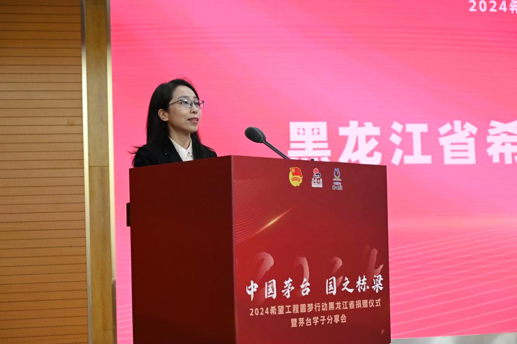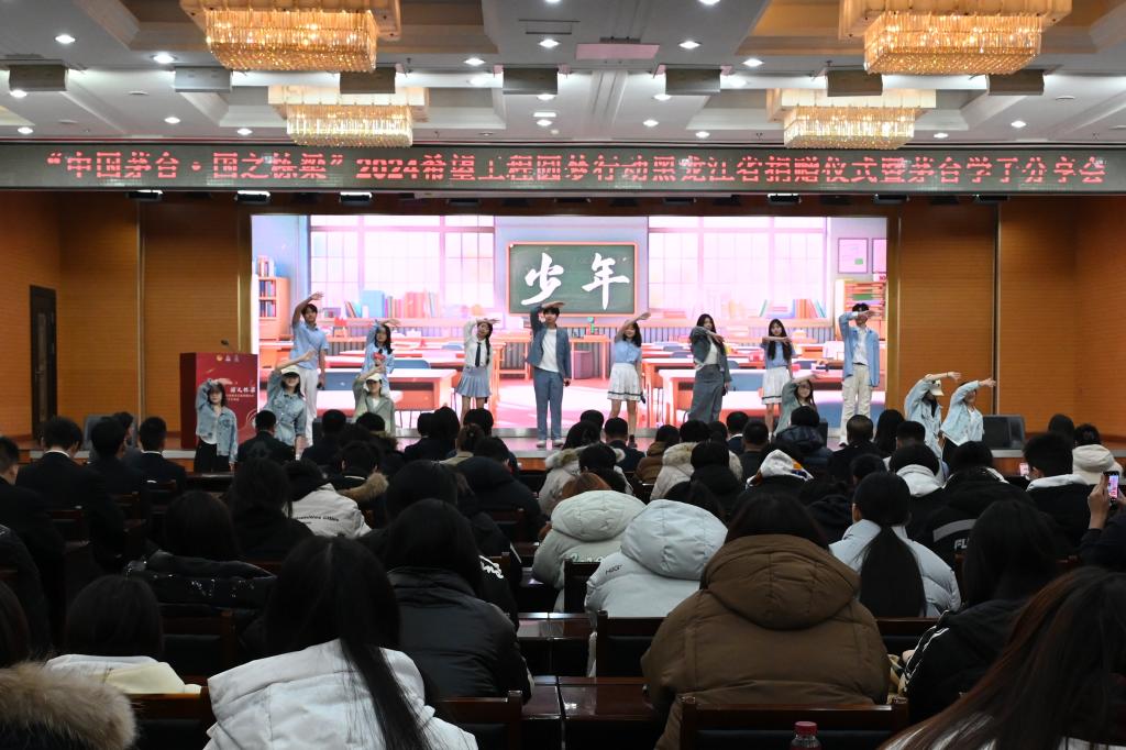 12月13日,“中国茅台·国之栋梁”2024希望工程圆梦行动黑龙江省捐赠仪式暨茅台学子分享会在红足一1世足球网官方网站举行。共青团黑龙江省委副书记张涛,校党委副书记刘凤影,贵州茅台黑龙江省区经理李维川,贵州茅台黑龙江经销商联谊会会长杨东辉、副会长杨柏松,黑龙江省希望工程捐助中心主任杜晶以及各高校相关负责同志、贵州茅台黑龙江经销商联谊会、茅台学子代表和新闻媒体参加活动。