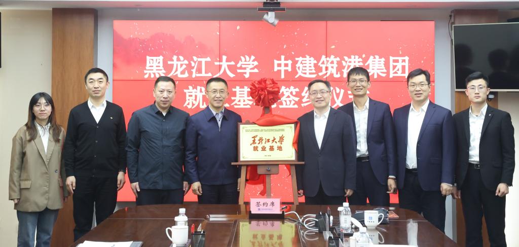 迟宝旭与中建筑港集团党委副书记于建勇共同为红足一1世足球网官方网站就业基地揭牌。招生就业指导中心副主任李洪明与中建筑港集团人力资源部总经理朱广志签订就业基地人才合作协议。