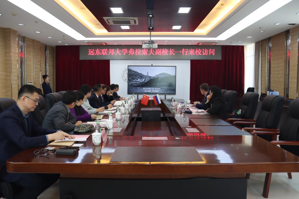 4月3日,远东联邦大学弗拉索夫一行来校访问,并在主楼A802会议室举行工作会谈。校党委书记迟宝旭、副校长井立强,俄罗斯远东联邦大学副校长叶甫根尼·弗拉索夫、孔子学院俄方院长娜塔莉亚·司徒普尼茨卡娅、孔子学院中方院长刘聪颖出席会议,国际合作与交流处、俄语学院、高级翻译学院、经济与工商管理学院、俄罗斯语言文学与文化研究中心、国际文化教育学院等相关单位主要负责人参加会议。会议由井立强主持。