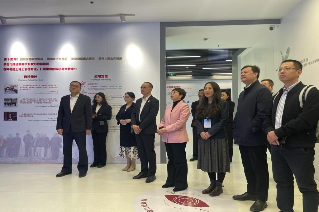 会前,西安交通大学党委书记卢建军陪同项目院校代表参观创新港数字展厅。(国际合作与交流处供稿)