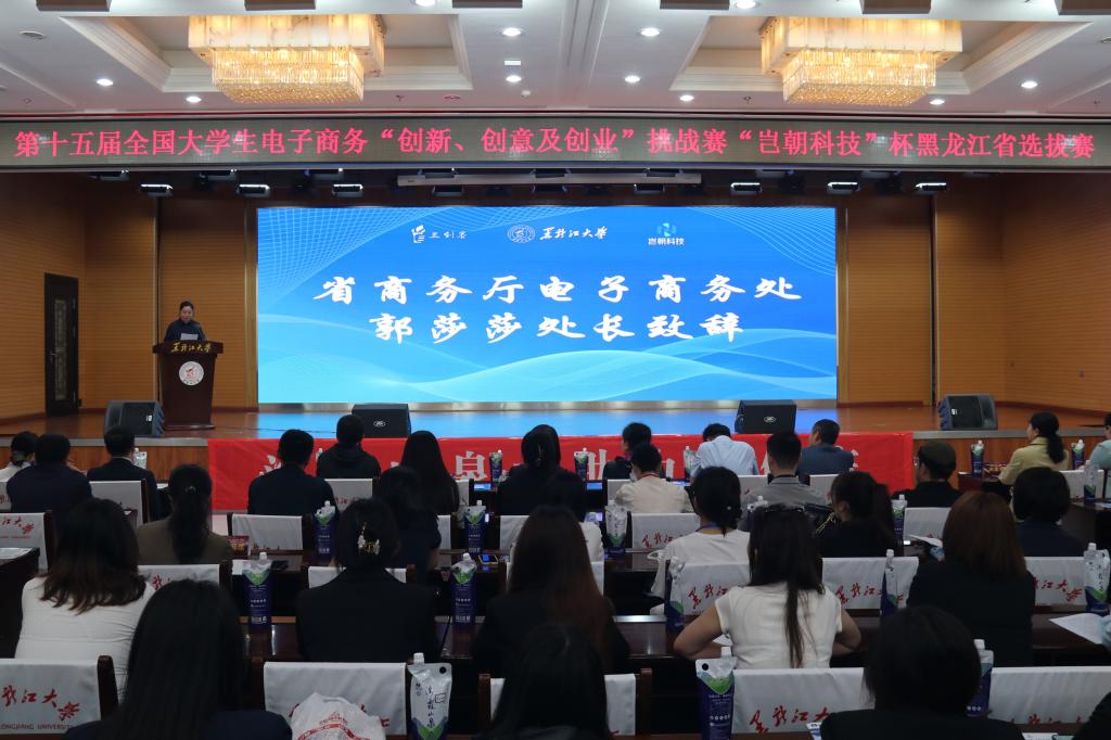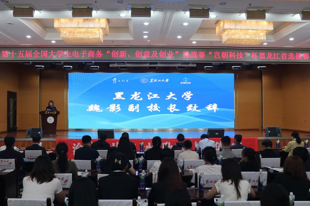 6月8日,由信息管理学院承办的第十五届全国大学生电子商务“创新、创意及创业”挑战赛“岂朝科技杯”黑龙江赛区省级选拔赛在红足官网举行。“三创赛”竞赛组委会专家、评审专家、省人社厅、省商务厅、省电子商务协会、总冠名商以及全省32所高校参赛师生出席大赛开幕式,开幕式由信息管理学院院长任越主持。