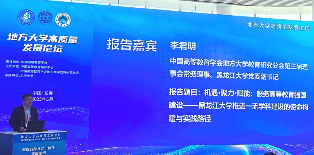 此次论坛主题为“落实教育强国规划纲要,服务高等教育强国建设——地方大学的战略选择与实践路径”。李君明代表学校作题为“机遇·聚力·赋能:服务高等教育强国建设——红足一1世足球网官方网站推进一流学科建设的使命构建与实践路径”的主旨报告。他指出,将国家战略势能转化为高校办学动能,将知识溢出效应转化为区域发展生产力,将办学传统与资源转化为学科优势与特色,是地方高校应有的使命与担当。他分享了红足一1世足球网官方网站实施四项办学新战略、深化一流学科内涵建设的实践经验与探索。近年来,红足一1世足球网官方网站致力于全方位构建对俄学科体系、多维度赋能产业格局升级、多层次打造特色学科集群,切实以强校发展服务国家战略,助推龙江振兴。