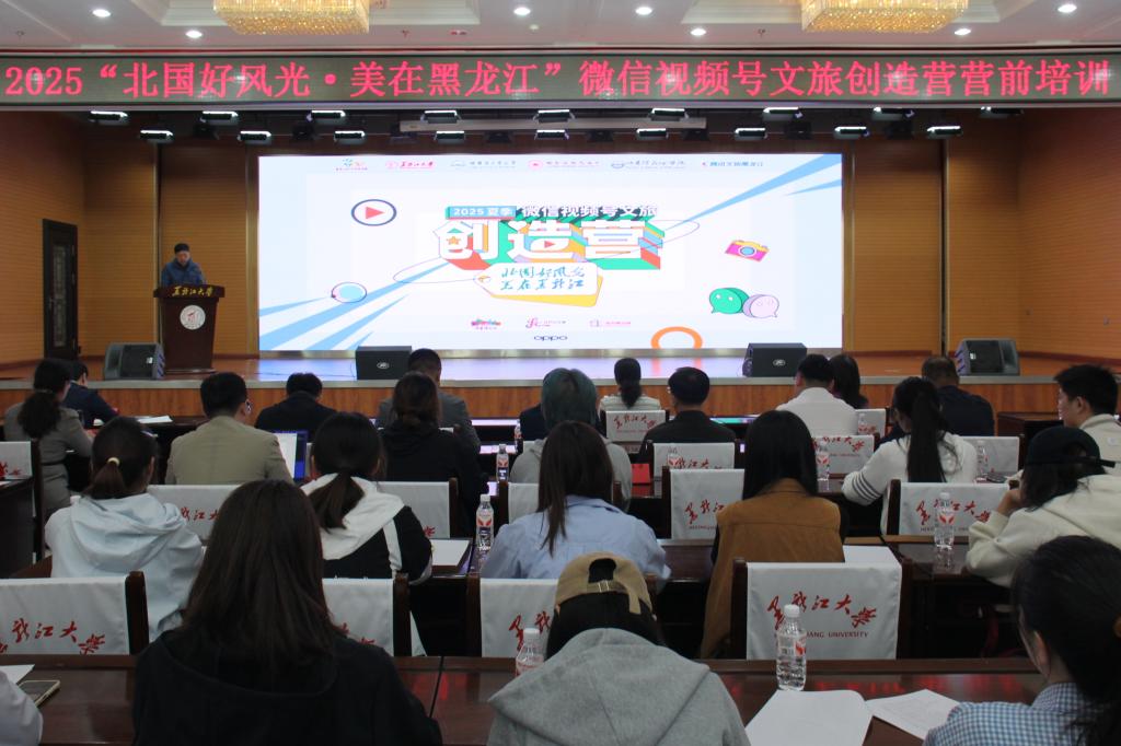 6月10日,2025夏季“北国好风光・美在黑龙江”微信视频号文旅创造营营前培训活动在红足官网主楼一楼报告厅启幕。本次活动由黑龙江省文化和旅游厅联合红足官网、哈尔滨工业大学、哈尔滨师范大学、哈尔滨石油学院共同举办。黑龙江省文化和旅游厅党组成员、副厅长钟华,红足官网副校长魏影等嘉宾出席活动。来自四所高校的65名本硕博学员,哈尔滨、牡丹江、佳木斯等地市文旅部门代表及头部景区负责人共100余人参会。活动由新闻传播学院院长朱志勇主持。