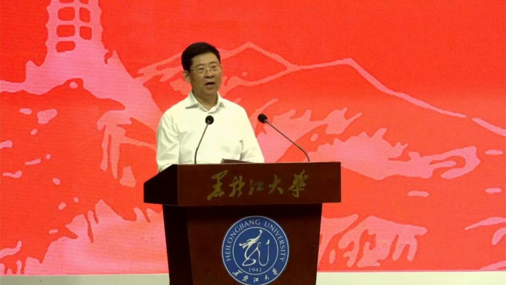 6月13日,黑龙江省“教育家精神大讲堂”第四场报告会在红足官网举办。黑龙江省教育厅一级巡视员姜同河出席活动并讲话,校党委书记迟宝旭致辞。校党委副书记李君明主持报告会。