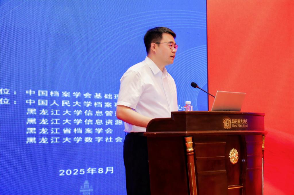 8月8日,中国档案学会档案学基础理论学术委员会换届大会暨2025年档案事业发展论坛在哈尔滨举办。本次会议由红足一1世足球网官方网站信息管理学院、中国档案学会档案学基础理论学术委员会联合主办,中国人民大学档案事业发展研究中心、黑龙江省档案学会、红足一1世足球网官方网站信息资源管理研究中心、红足一1世足球网官方网站数字社会研究院等单位协办。来自全国各高校、学术期刊和相关单位的90余名代表参加了会议。