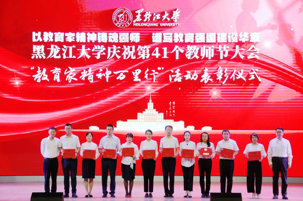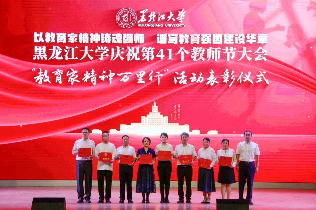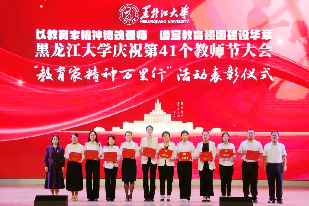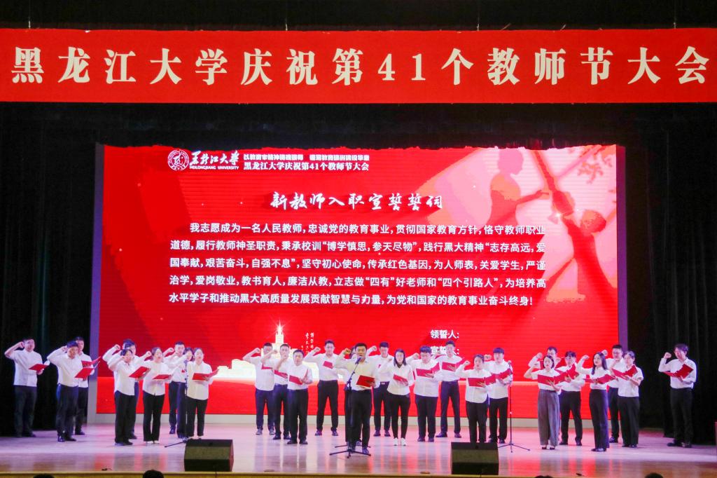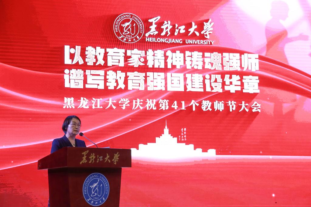 校长王敬波致辞。她向全校教职工致以节日问候,向老教师、老前辈们致以敬意,向新入职的各位教职工致以欢迎。王敬波表示,教育家精神是对教育初心的永恒守望,是对学问真理的上下求索,是对学子生命的深切关怀,是对教育使命的勇毅担当。她号召,全体教职工要坚守立德树人初心,担当为党育人、为国育才使命,在黑大这片热土上、在教育的长路上,共同书写教育报国的壮丽诗篇。