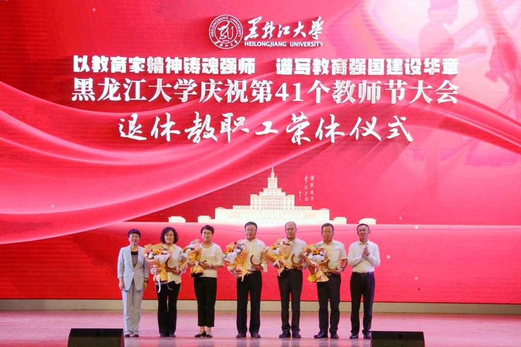 在学校84年的办学历程里,一代代黑大人薪火相传、躬耕教坛、佳绩频出,他们在育人阵地上默默耕耘。在退休教职工荣休仪式上,校党委书记迟宝旭、校长王敬波为荣休教师代表颁发纪念牌。