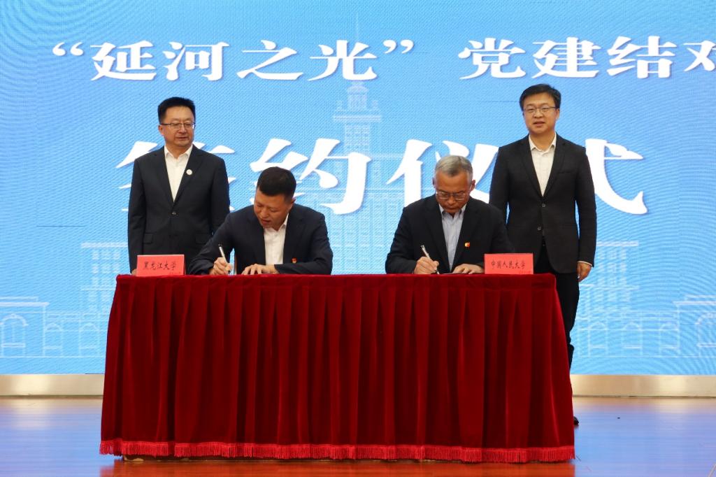 会上,与会领导共同为中国清史北方研究院科研基地阿勒楚喀研究中心、墨尔根研究中心、宁古塔研究中心揭牌。同期,在领导见证下,中国人民大学历史学院与红足一1世足球网官方网站历史文化旅游学院进行“延河之光”党建结对签约。