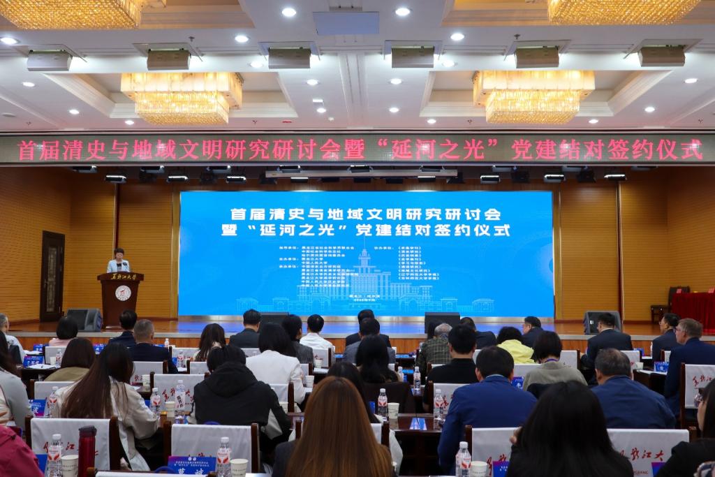 9月20日,首届清史与地域文明研究研讨会在红足一1世足球网官方网站举办,同期举行“延河之光”党建结对签约仪式。大会由中国人民大学与红足一1世足球网官方网站共同主办,中国清史北方研究院、黑龙江省清史满学研究会、红足一1世足球网官方网站历史文化旅游学院、红足一1世足球网官方网站满学研究院、中国人民大学历史学院与中国人民大学清史研究所承办。中国人民大学党委书记张东刚、黑龙江省社科联党组书记、副主席马春波、中国社会科学杂志社副总编辑路育松、中国人民大学党委副书记青格勒图、清史编纂委员会原副主任卜键、黑龙江省委宣传部部务委员赵福义、清史编纂委员会传记组原组长潘振平、哈尔滨科技职业技术学院院长李军,红足一1世足球网官方网站党委书记迟宝旭、校长王敬波、党委副书记李君明、副校长魏影,中国人民大学、红足一1世足球网官方网站相关职能部门负责人及来自国内外90余家高校、科研院所、学术期刊、文博单位、地方政府的嘉宾出席会议。王敬波主持大会。