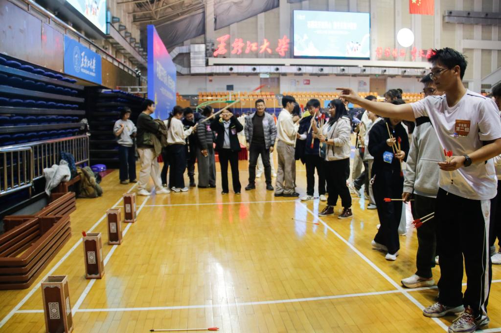 本次运动会紧扣“石榴花开结同心携手共筑中国梦”主题,共设置了15个体育项目。一方面引入射箭、投壶、押加、布库等民族传统体育项目,让师生们在运动中感悟民族文化传承与创新;另一面设置同心鼓、舞龙、抢花炮、蹴鞠等团体体验项目,来自不同地区、不同年级、不同民族的师生组队协作,在同步发力中体味包容、促进交融,让体育精神与民族精神一起扎根。