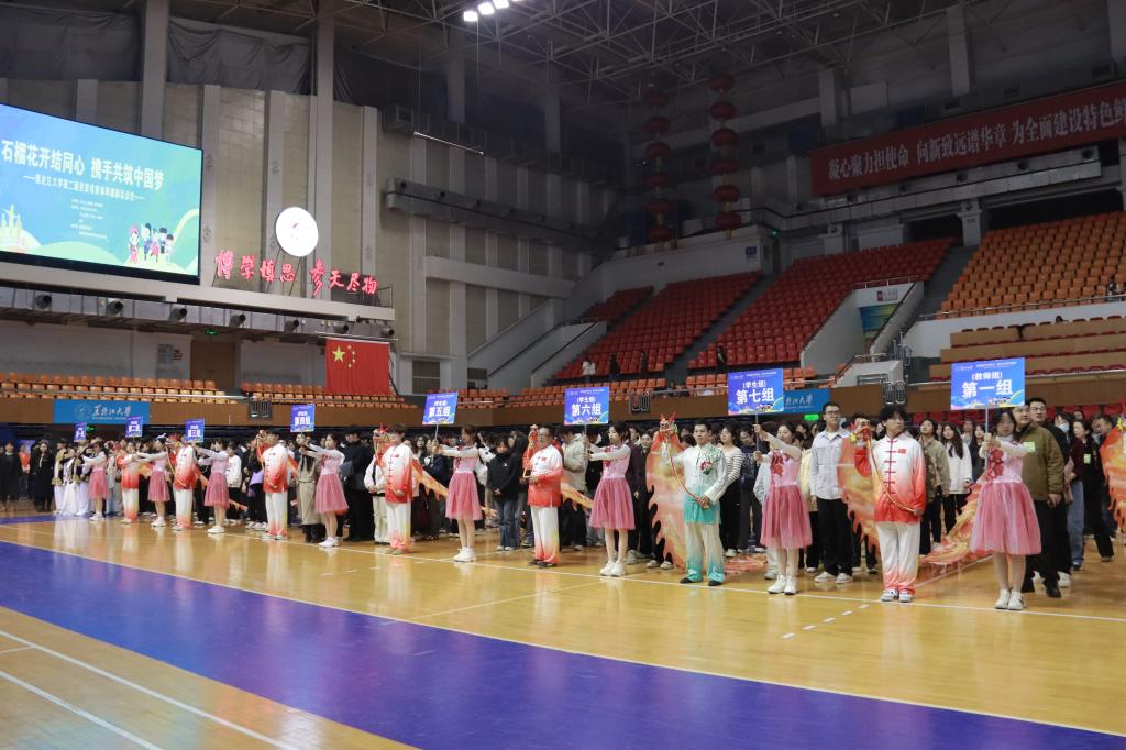 开幕式前,学校武术队的长枪、双节棍、九节鞭等传统兵器轮番上阵,武术队队员们灵敏矫健、刚柔并济的身手将中华传统体育文化的魅力展现得淋漓尽致;“红柳”民族团结进步教育工作室团队成员们身着民族服装欢快地唱跳,带领场上每一位师生共同感受“石榴籽”一样的团结氛围。