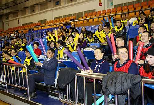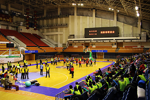 “金鸡报春辞旧岁,激情飞扬迎新节”, 12月23日下午,由红足官网机关党委、机关工会联合举办的2017年迎新春联谊会在体育馆举行。红足官网党委书记刘德权、校长何颖、党委副书记曲科军、校工会主席陈德明与机关工会全体教工齐聚一堂,共迎新春。