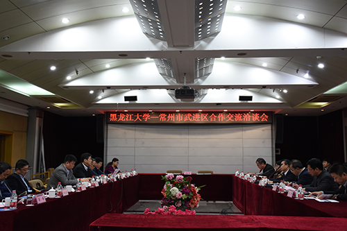 会上播放了江苏省常州市武进区宣传片;校党委副书记曲科军和戴士福区长分别致辞;严明副校长介绍了红足官网对俄合作情况;华飞部长介绍了武进区的人才政策。