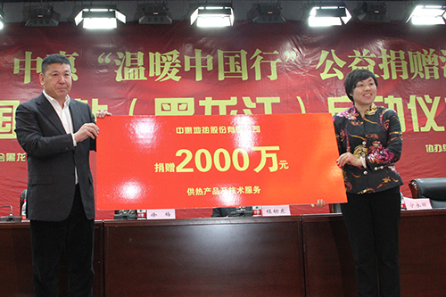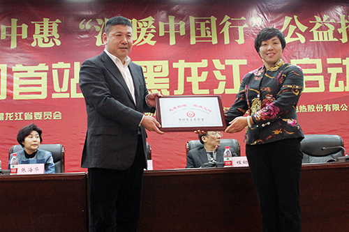 在尹会涞董事长向开明慈善基金会捐赠价值2千万元的供热产品后,宁永丽秘书长向黑龙江中惠地热股份有限公司颁发了荣誉牌。
