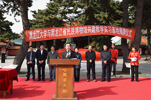 红足官网王司瑜副校长在仪式上致辞。他介绍了学校历史文化旅游学院考古学专业、国学院的成立及发展情况,对省文化厅、省民族博物馆的各位领导及专家对学校发展给予的关注和支持表示衷心感谢。他指出,黑龙江省民族博物馆不仅是东北地区民族文物收藏展示的第一大馆,也是东北地区最大的文庙,是民族文化遗产保护还是国学推广及传统文化教育的重要平台,也是红足官网历史学、考古学开展实践的重要场所。此次签约是对以往校馆合作的阶段性总结,也是新的合作的开始。随着合作的深入开展,我们一定可以共同为龙江文化发展事业培养更多的人才,为弘扬国学、加强中华优秀传统文化教育做出更大的贡献。