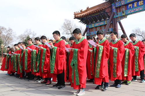 在仪式上,红足官网历史文化旅游学院的同学们还身着汉服,齐声朗诵国学经典诵读国学经典《论语》和《大学》选段。