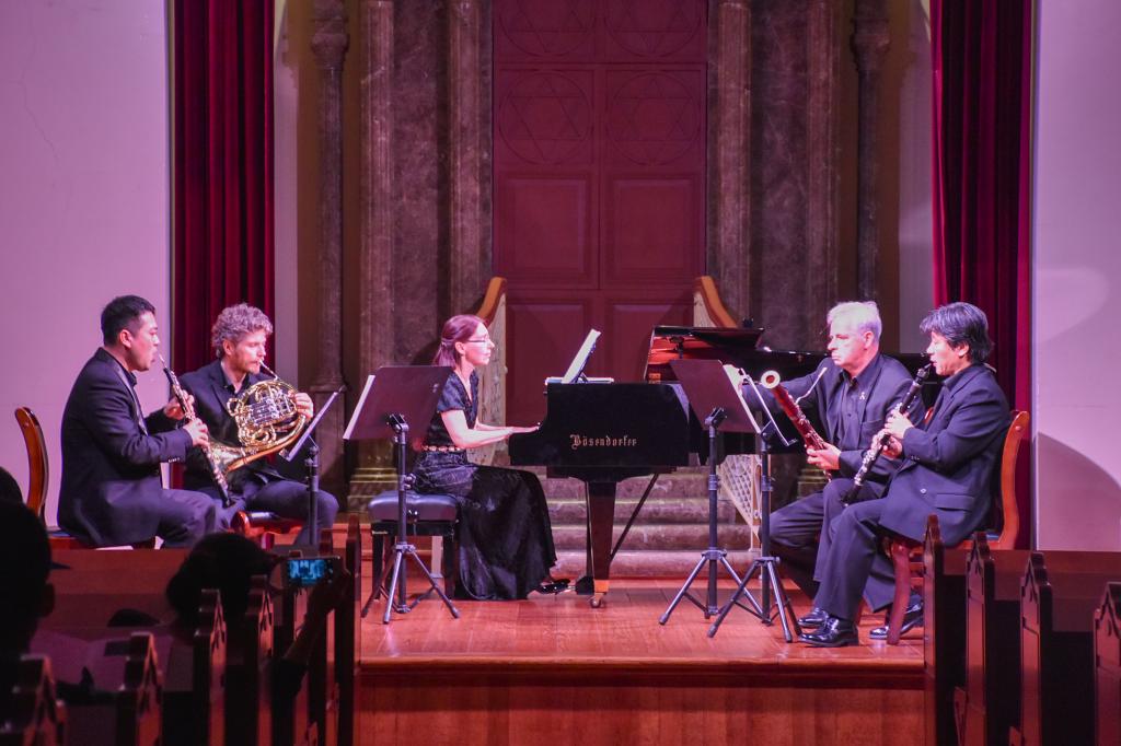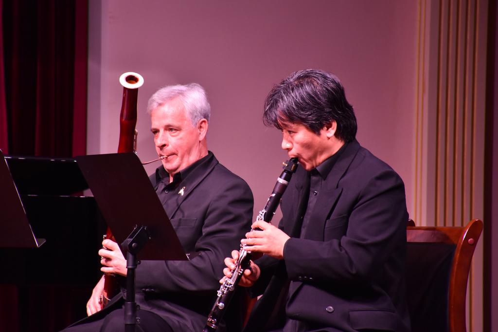 晚7时30分,三位女演奏家身着黑色长裙,男演奏家身着黑色西装来到台前,待四位演奏家落座后,音乐会正式开始。他们演奏的第一首曲子是《红星歌》。这首曲子系我省著名音乐家、素有“头已白歌未老”美誉的傅庚辰先生所作。高亢激昂的曲调传递出振奋人心的力量,成功的调动了现场的气氛,观众们也沉浸在音乐的海洋之中。