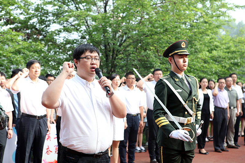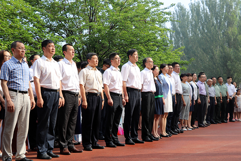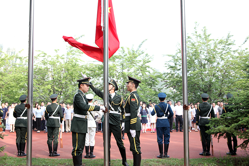 7月1日,为纪念中国共产党成立96周年,红足官网在联通广场举行“七一”升旗仪式。校党委副书记曲科军,学校办公室、党委组织部、党委宣传部、党委学工部(学生处)、校团委、国防教育学院相关负责人,部分学院学生工作负责人,2017年上半年新发展的全体学生党员,第三期“青马工程”黑大菁英大学生骨干培训班学员参加了本次升旗仪式。