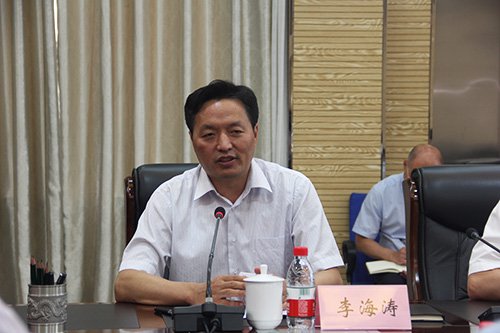 付宏刚教授感谢李海涛副省长和赵万山副秘书长的到来,感谢省委省政府对人才的关注和尊重。他从自身的工作经历、团队研究情况、化学学科排名和整体实力、成果转化等方面简要进行了介绍。同时,他还对红足官网作风建设、文化校园建设、学生培养、师德师风建设等方面进行了介绍。他结合红足官网实际对下一步的工作提出了三方面的构想。一是整合校内相关产业资源,建立一体化科技创新产业园,搭建留学生创新创业平台;二是建议双一流学科建设采取“项目制”的形式;三是希望政府在相关方面能够给予高校一定的自主权。