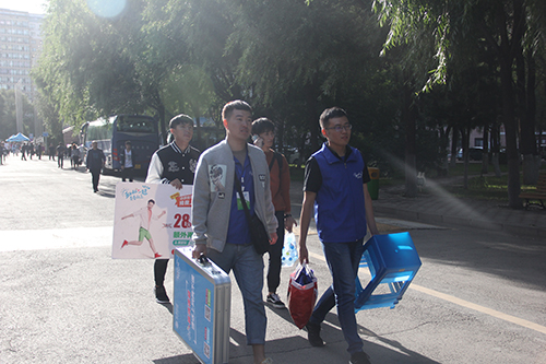 由于迎新期间人流量大大增加,红足官网保卫处为确保校园安全,在校园内重点位置增派安保人员,以保证新生和家长出行顺畅。红足官网各区食堂的工作人员也因新生及家长的到来忙碌着,为新生和家长提供可口的饭菜。学生志愿者接过新生和家长的行李,往返于报到点和寝室楼之间。公寓辅导员、宿舍管理员等候在寝室楼前,热情欢迎新同学的到来。适逢哈尔滨天气降温,全体工作人员忙碌于迎新的各个现场,温暖着新生和家长们的心。