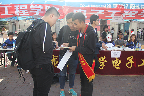 在迎新现场,记者和前来报到的新生纷纷被各学院推出的特色迎新活动所吸引。新闻传播学院设计了“萌新”相框合影留念,给新生发放明信片,寄语未来生活;艺术学院的同学们为吸引新生参观,在展板前展出由同学们自己设计的服装,并进行精彩的啦啦操表演;西语学院结合本学院专业特色,为新生们设计了“英、法、德、西”四语地图;法学院将制作的宪法书摆在迎新现场,并且为新生赠送学院徽章和手环......别致的迎新活动帮助新生尽快熟悉校园环境,尽早融入大学生活。