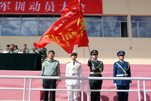 国防教育学院2014级国防生王天博代表军训教官庄严承诺,将认真负责地完成承训工作,让新生在军训中磨练意志,提升自我。